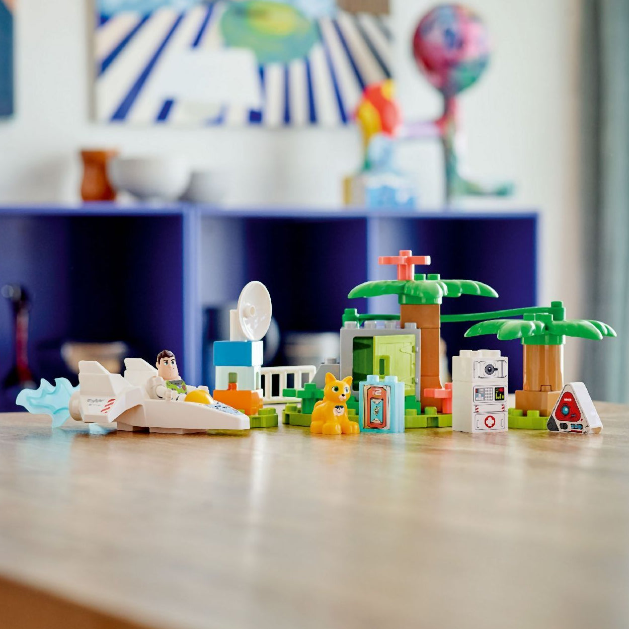 Includes a LEGO® DUPLO® Disney and Pixar Buzz Lightyear figure, Sox the robot cat, Ivan the computer, Eric the triangular droid, a spaceship, fascinating locations and fun accessories.