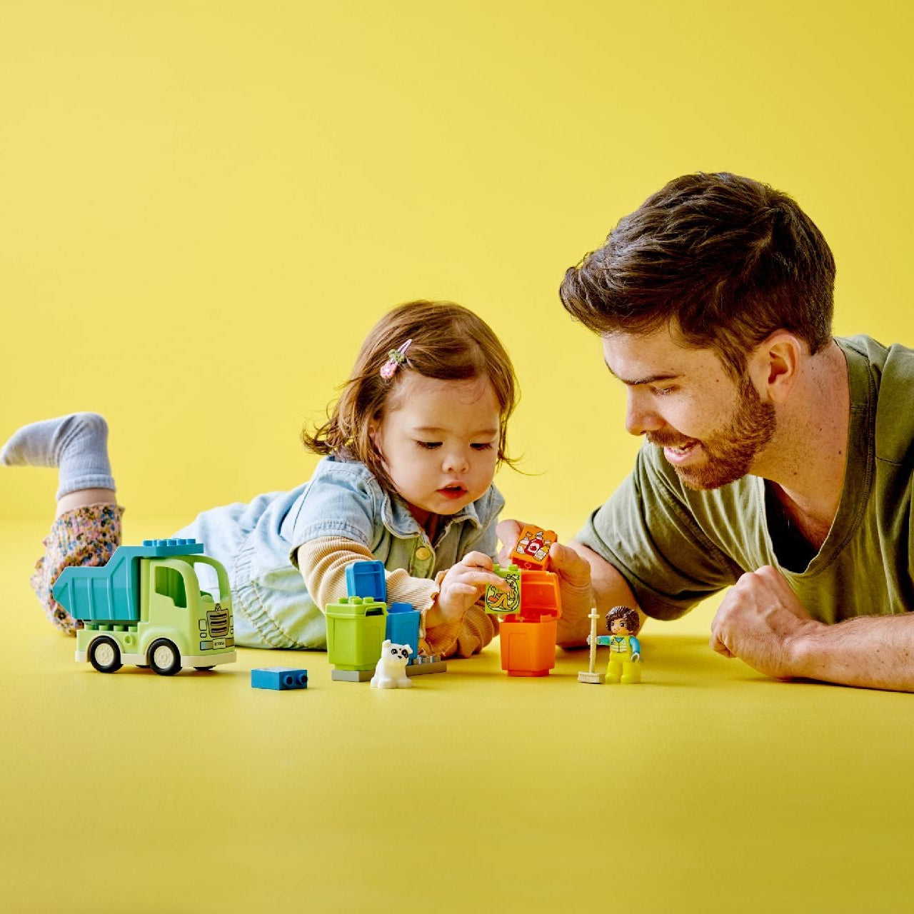 Lego Duplo Town Recycling Truck (10987) toy teaches toddlers about waste sorting while they have fun playing out the world they see around them.