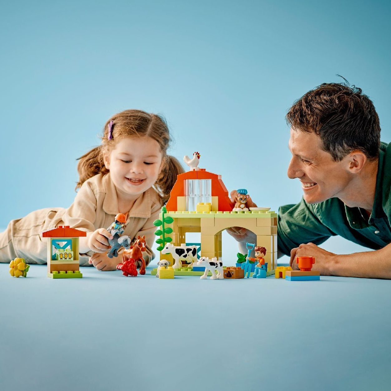 This lego 10416 set Comes with a farmhouse, stable, chicken coop and hayloft, plus 8 figures, including 2 horses, a sheep, cat, cow, chicken and chicks.