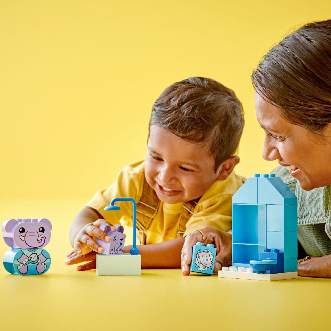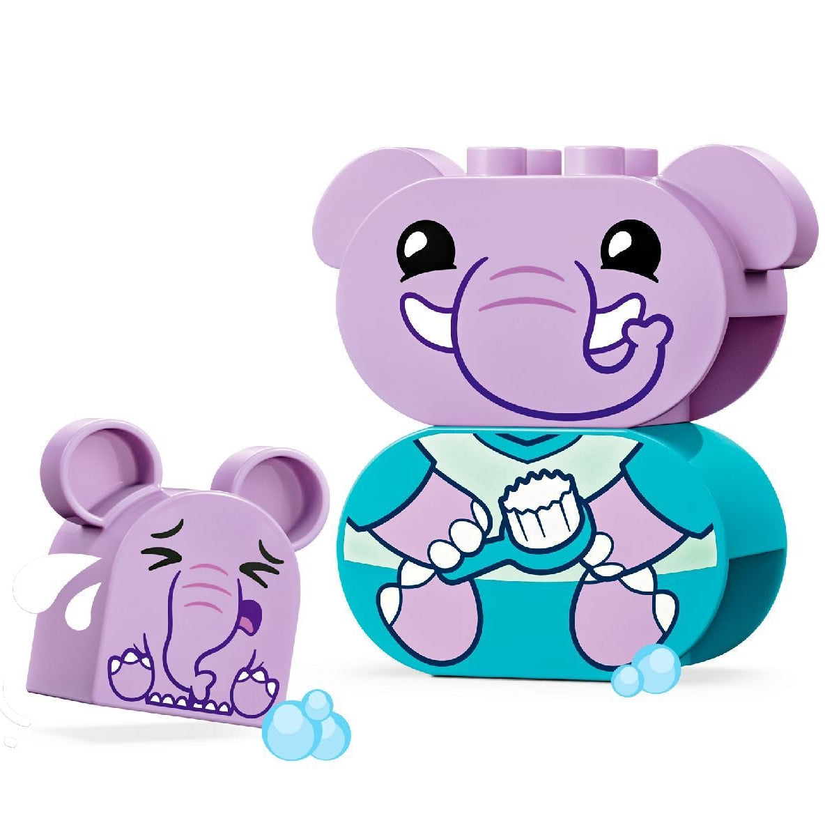 Comes with 2 elephant toys, plus atoilet, bath and shower built from durable LEGO® 10413 DUPLO® bricks and elements for playing out fun bath time routines.