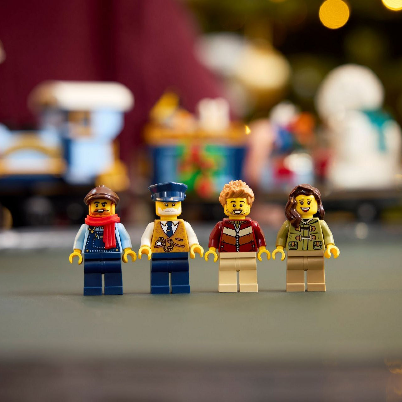 This LEGO® 10361 train set includes a locomotive, coal tender, flatcar, end car, platform, a 16 piece circular track, miniature toys including a 3D printed train piece and 4 minifigures.