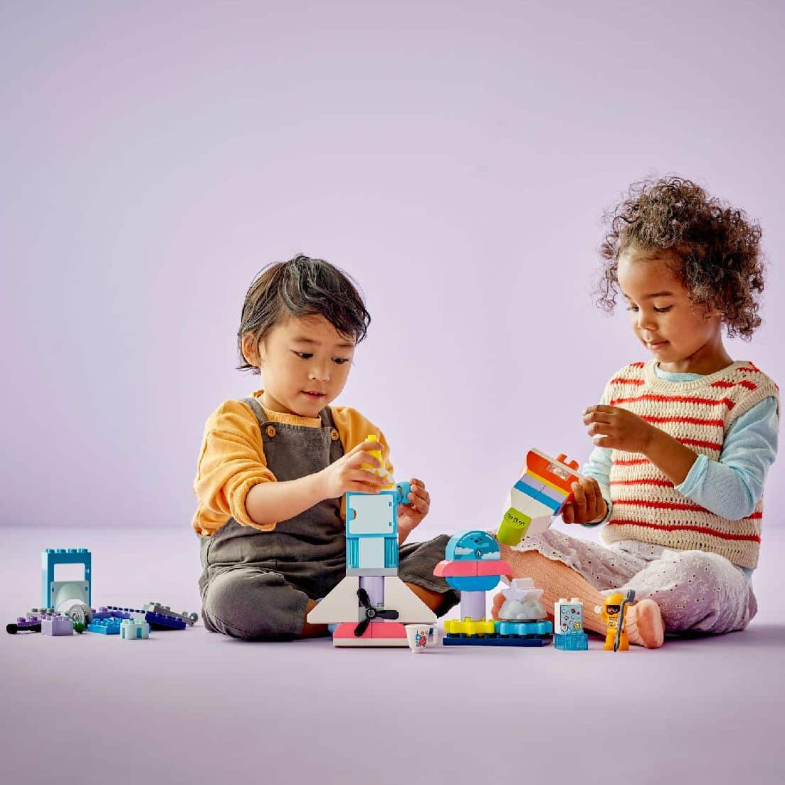 With a variety of colorful bricks andtoy accessories, plus an alien and 2 LEGO® DUPLO® astronaut figures, toddlers invent infinite, open ended space adventures.