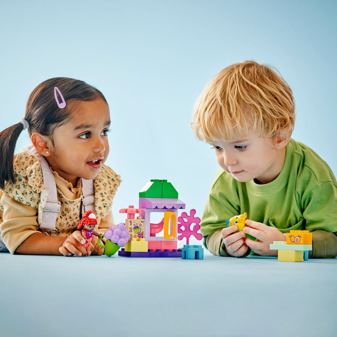 This role play construction toy for preschool kids comes with 2 LEGO® DUPLO® figures: Ariel and Flounder from the Disney Junior TV show Ariel.