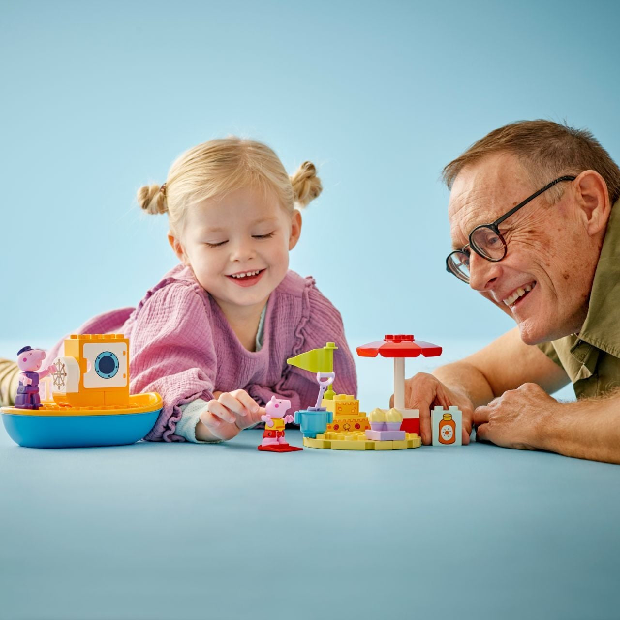 Comes with Peppa and Grandpa Pig figures, a buildable and floating toy boat, plus lots of creative accessories to spark limitless storytelling.